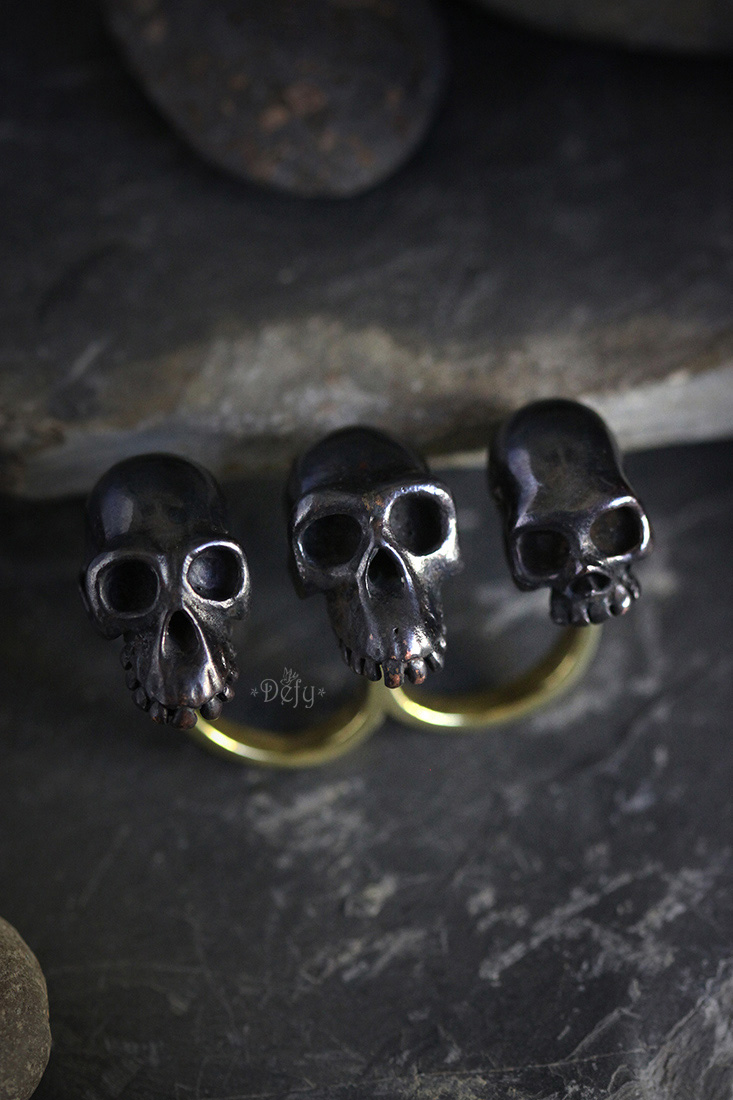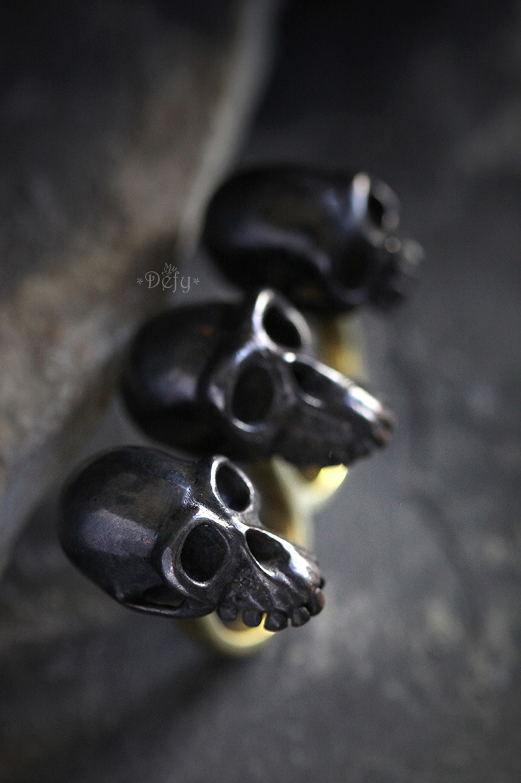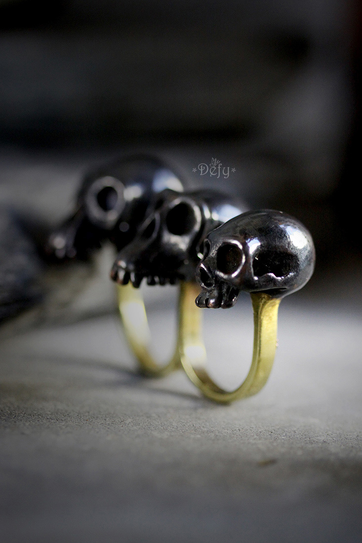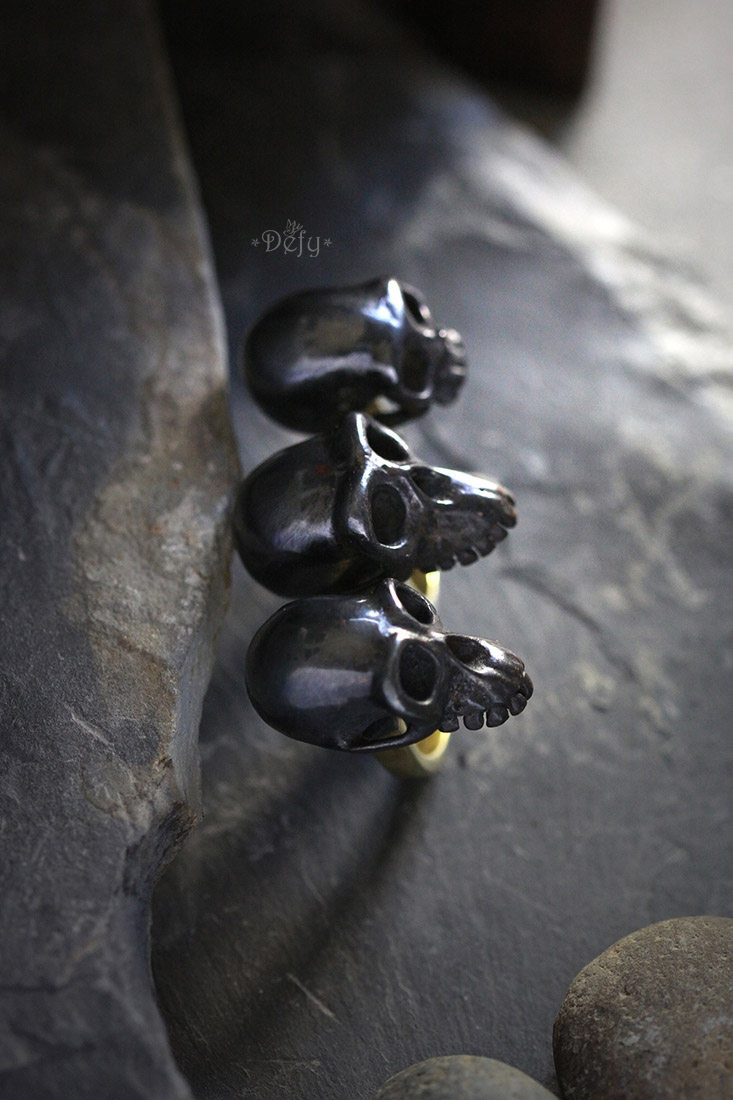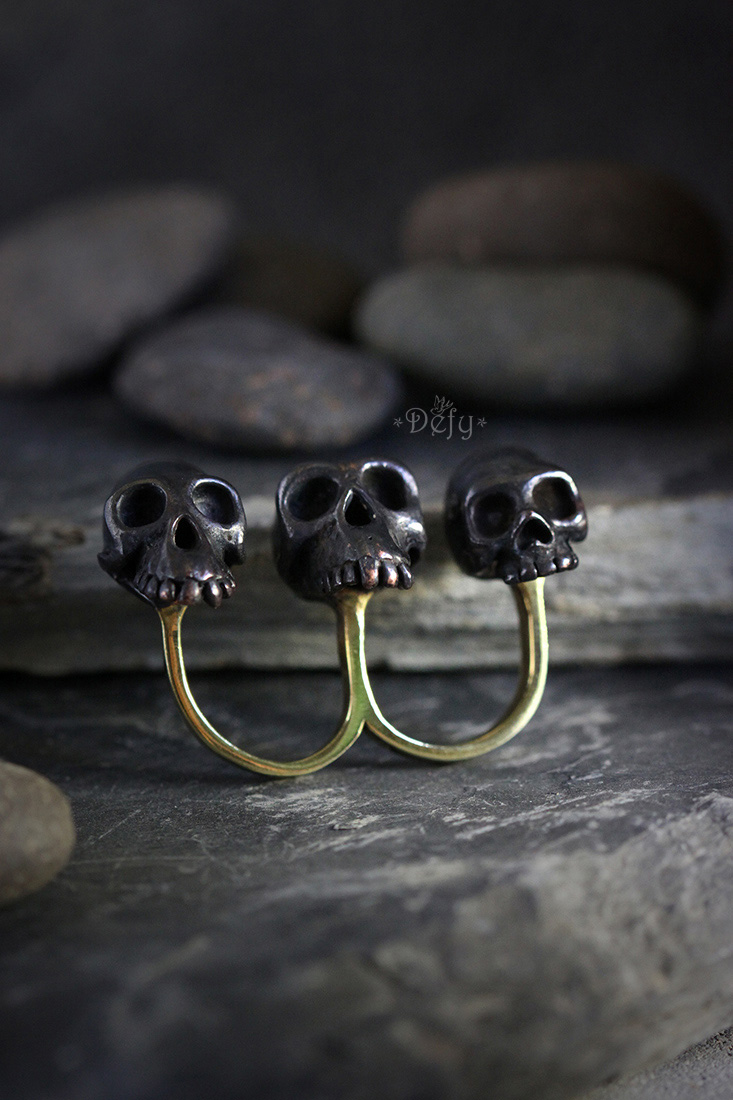 Three Monkey Skulls Black Double Ring